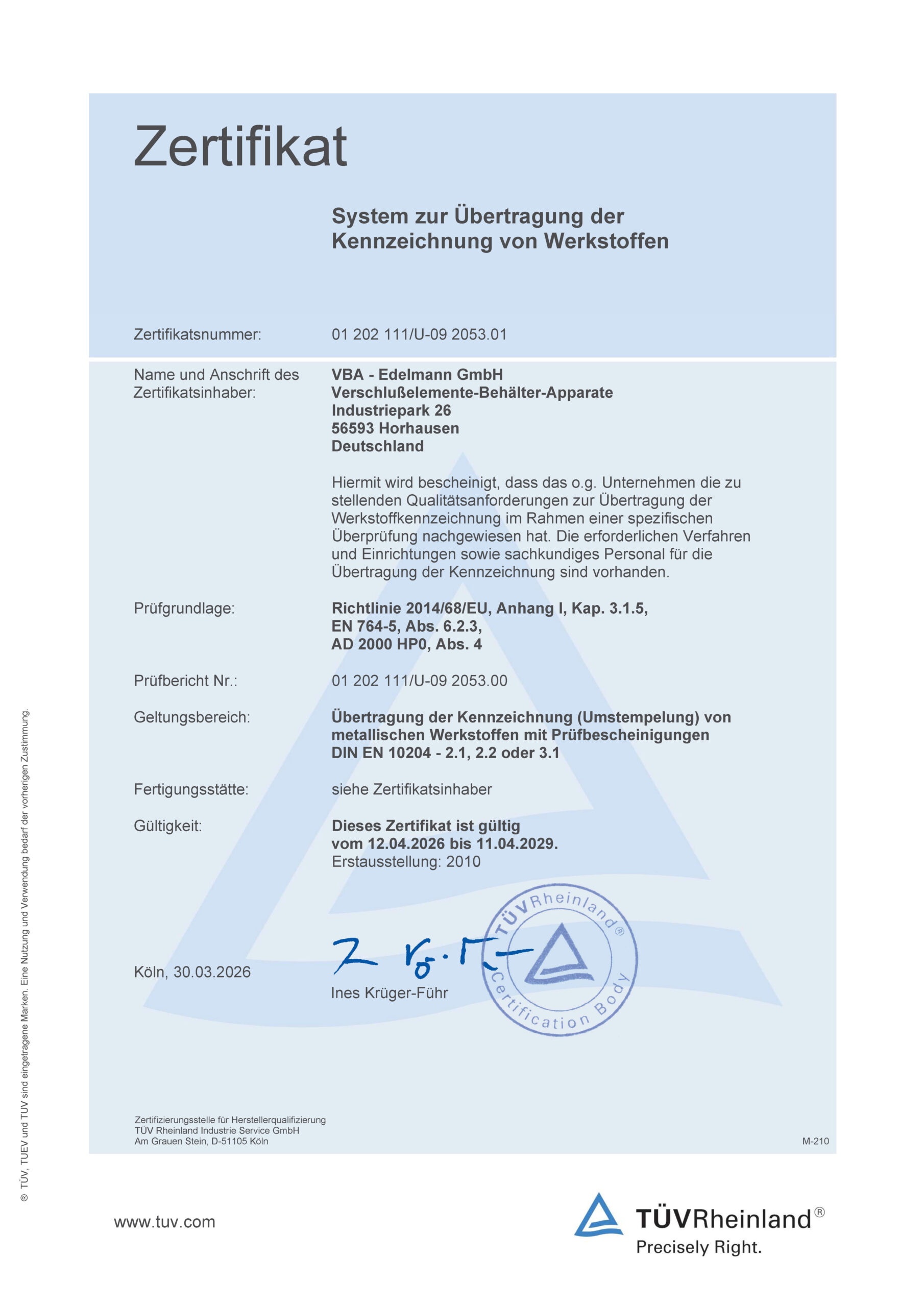 von Produkten und Dienstleistungen bei unabhängigen Sachverständigen und zugelassenen Instituten.